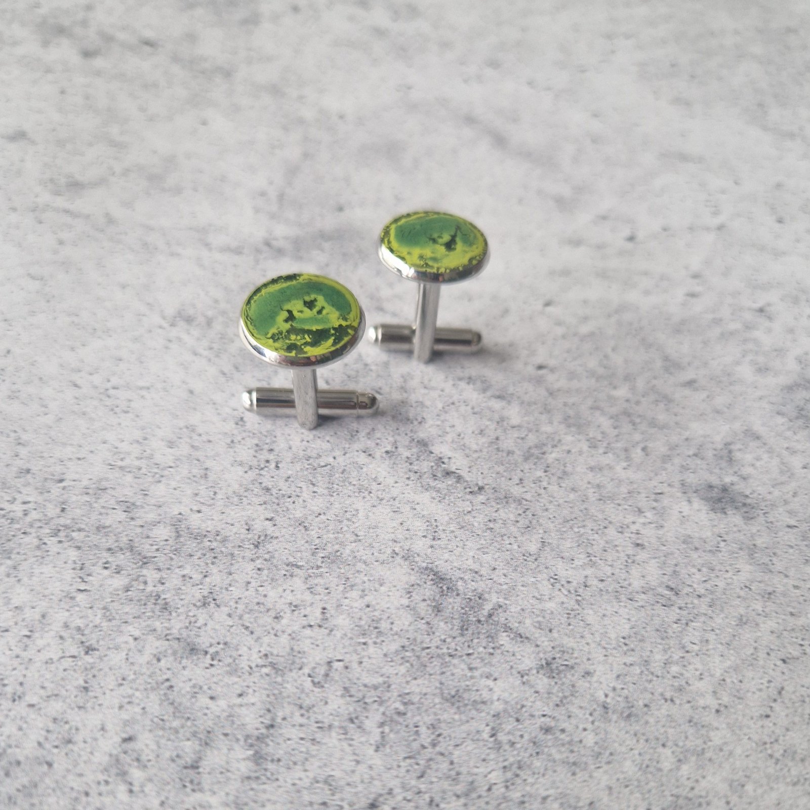 Šios sąsagos buvo sukurtos naudojant epoksidinę dervą bei žalios spalvos žaismą.